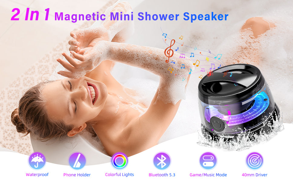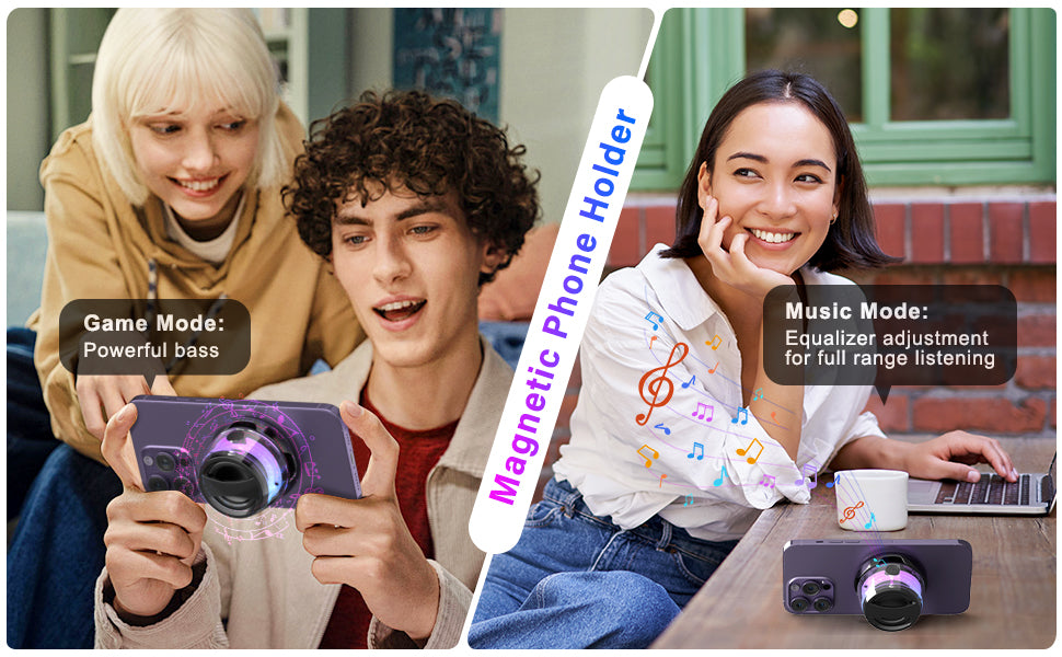 Altavoces Bluetooth magnéticos MiniMag™ 2 en 1 (paquete de 2): luces RGB, sonido 3D y soporte para teléfono | Emparejamiento TWS