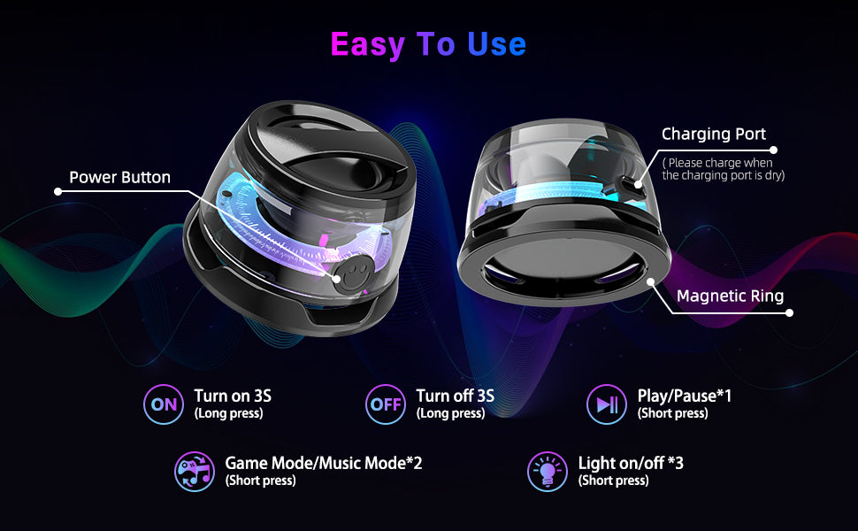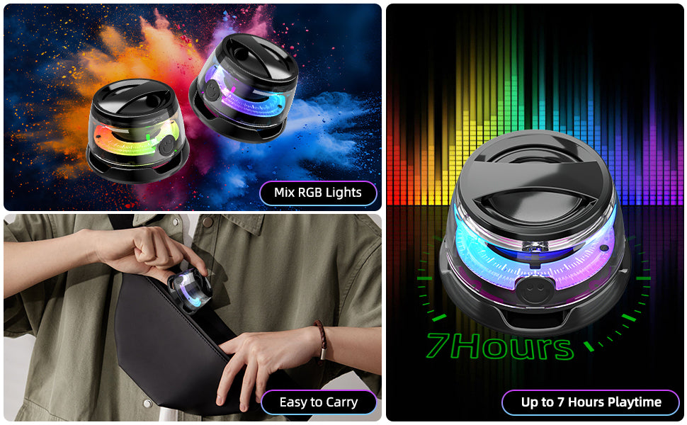 La carcasa transparente se ilumina con vibrantes colores RGB, añadiendo un toque visual a tu música. Perfecta para fiestas, sesiones nocturnas o simplemente para crear ambiente.