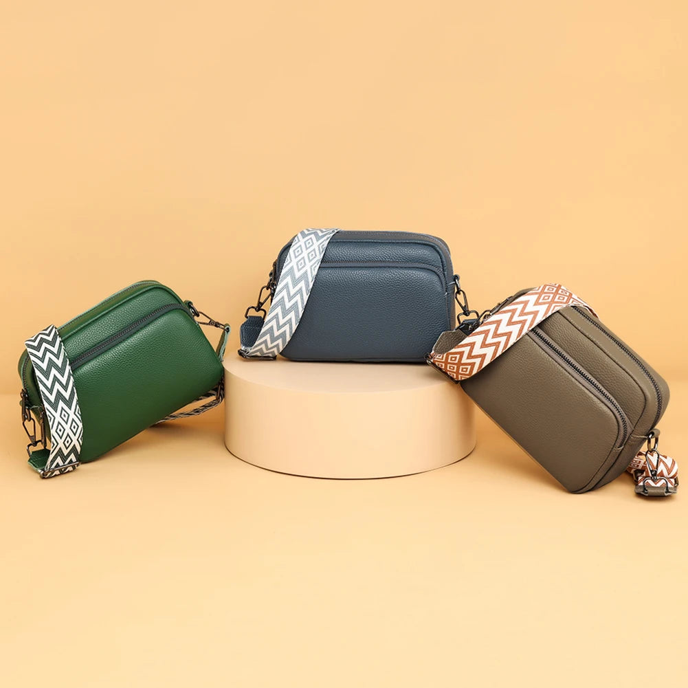Sac bandoulière femme en cuir véritable, bandoulière large, couleur unie, design luxueux, pochette pour téléphone portable