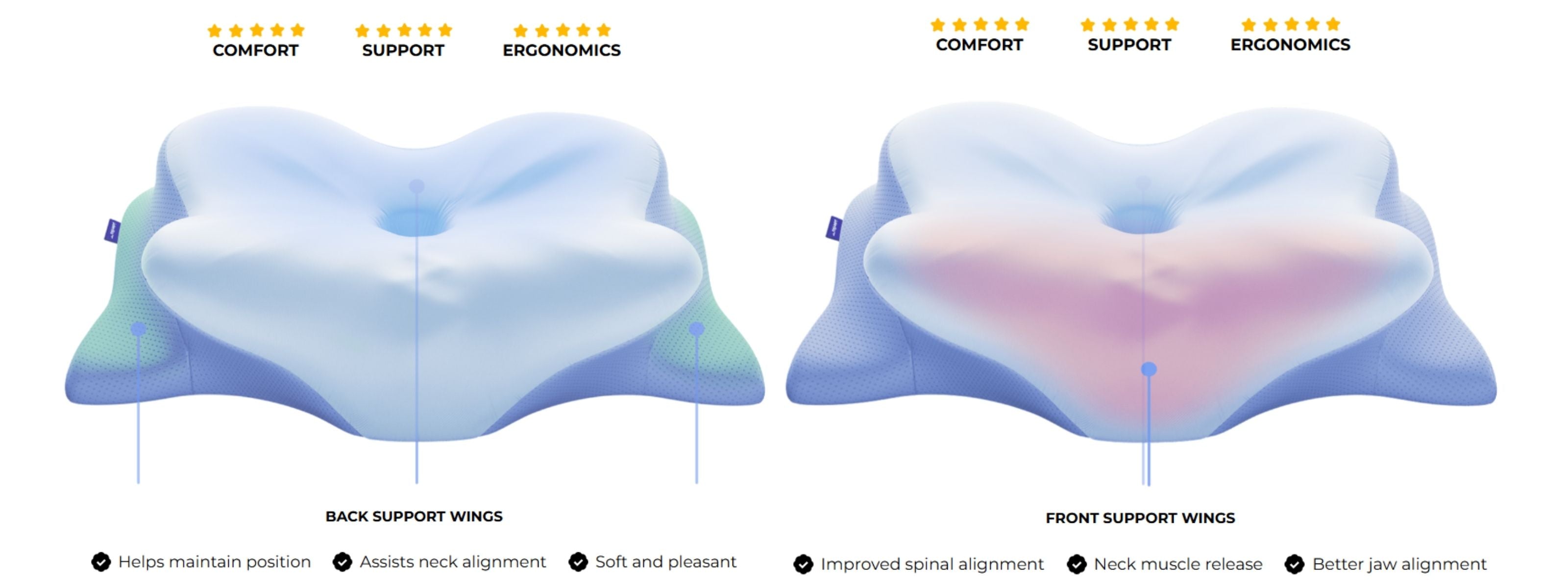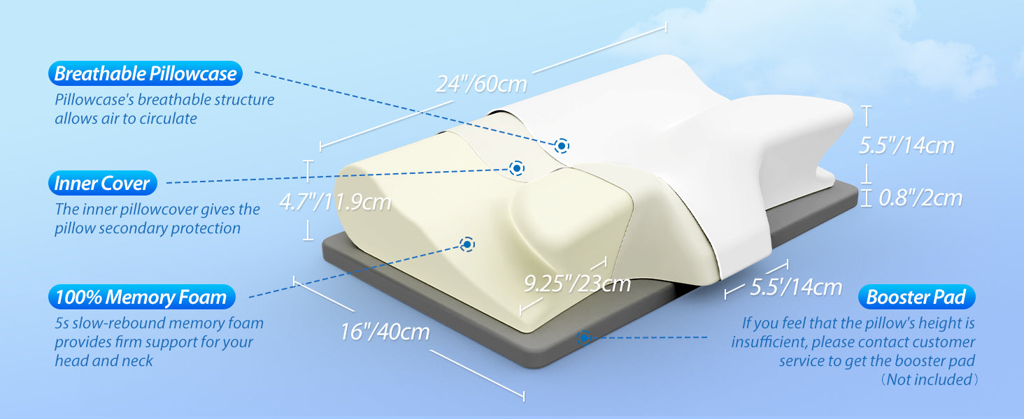 The contour shape gently supports your head, neck, and shoulders, promoting optimal spinal alignment. This design reduces pressure points, eases tension, and encourages better posture, leaving you feeling refreshed every morning.