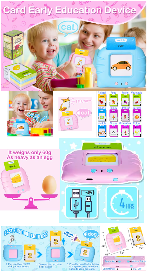 Simply insert a card into the reader, and it will pronounce the word and play a corresponding sound. It’s as simple as that—no complicated setup required!